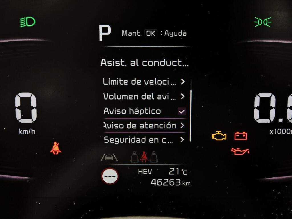 Sistema de alarma de colisión: activa las luces de freno con asistencia de frenado, sistema antiatropello peatones/ciclistas, monitorización del conductor y frenado a baja velocidad de 10 Km/h como mínimo aviso visual/ acústico, distancia programable, funciona por encima de 130 km/h / 78 mph, funciona por encima de 50 km/h / 30 mph y funciona por debajo de 50 km/h / 30 mph