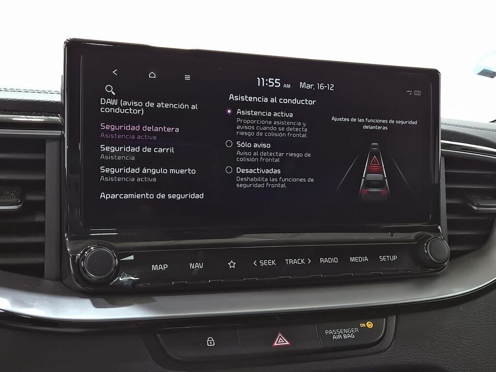 Sistema de alarma de colisión: activa las luces de freno con asistencia de frenado, sistema antiatropello peatones/ciclistas, monitorización del conductor y frenado a baja velocidad de 10 Km/h como mínimo aviso visual/ acústico, distancia programable, funciona por encima de 130 km/h / 78 mph, funciona por encima de 50 km/h / 30 mph y funciona por debajo de 50 km/h / 30 mph